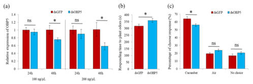 Figure 3. Silencing OBP5 affects the response of B. tabaci to host plants.