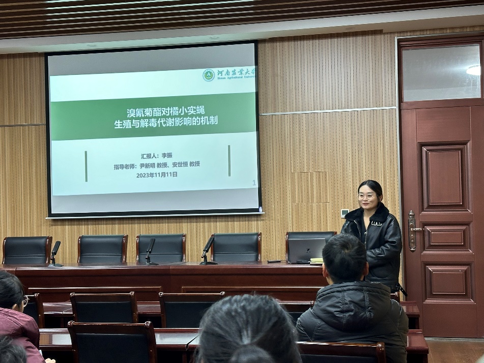 李振博士以“溴氰菊酯对橘小实蝇生殖与解毒代谢影响的机制”为题,向大家详细阐述了溴氰菊酯对橘小实蝇的亚致死效应,通过两性生命表预测亚致死浓度溴氰菊酯影响橘小实蝇F1代的种群动态,其在亚致死浓度下也能够抑制F1代种群增值力;并且解析了溴氰菊酯影响橘小实蝇生殖与解毒的机理,为指导田间合理用药,控制橘小实蝇种群发生,提供理论依据。