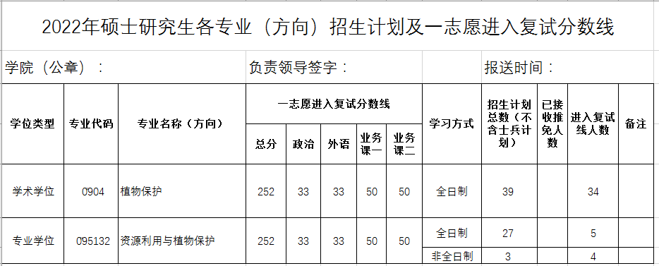 2022年硕士研究生各专业(方向)招生计划及一志愿进入复试分数线