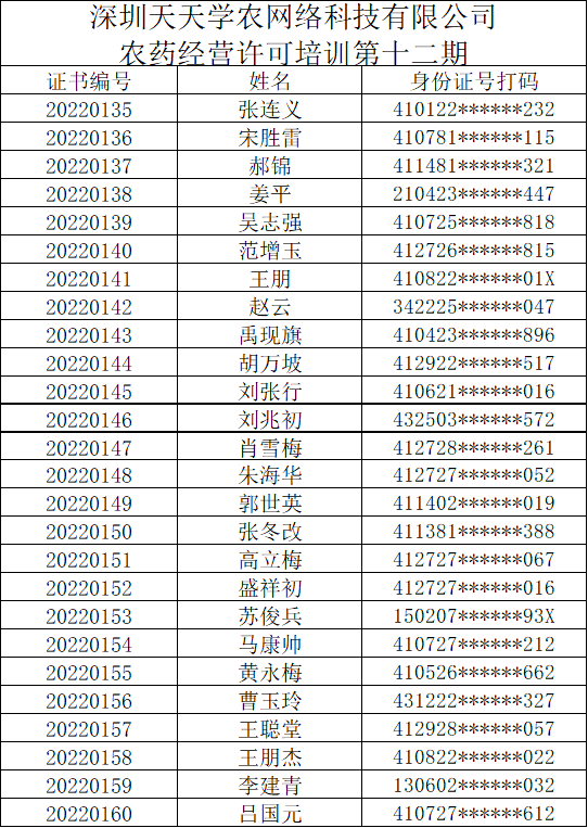 农药经营许可培训第12期公示名单
