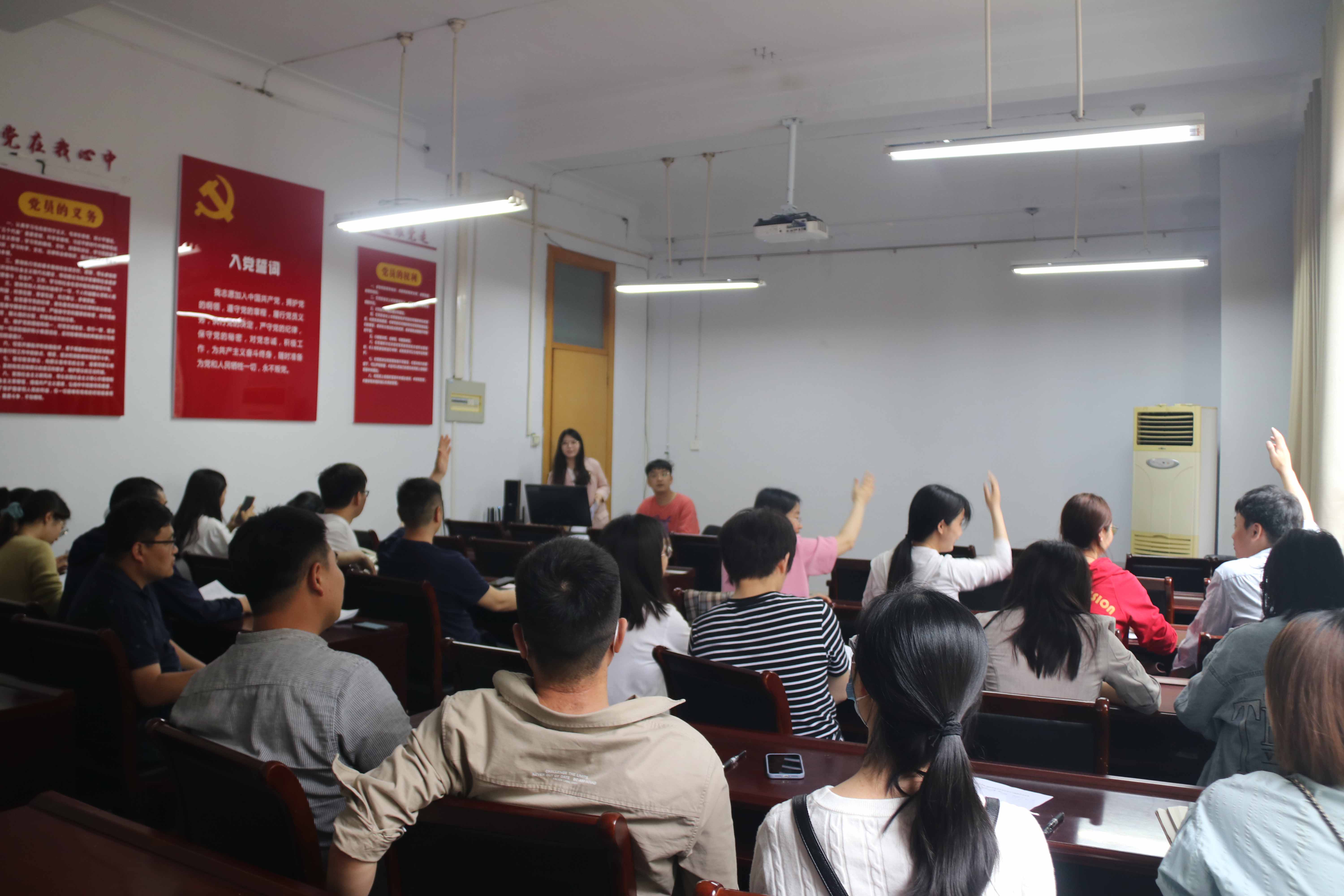 比赛开始前,主持人向参与活动的全体人员介绍本次竞赛的规则要求及评分标准,参赛人员认真聆听并做好记录。比赛正式开始后,全体参赛人员以党支部为单位派出代表抽签决定答题顺序并进行分组。本次比赛共分为教职工答题与学生党员答题两个环节。各组参赛队员认真阅读题目,互相配合,密切合作,按照比赛规则进行抢答。评委们做好监督及评分记录,并在比赛结束后进行评分,宣布比赛结果。之后,参赛的全体人员有序退场,本次竞赛活动顺利结束。