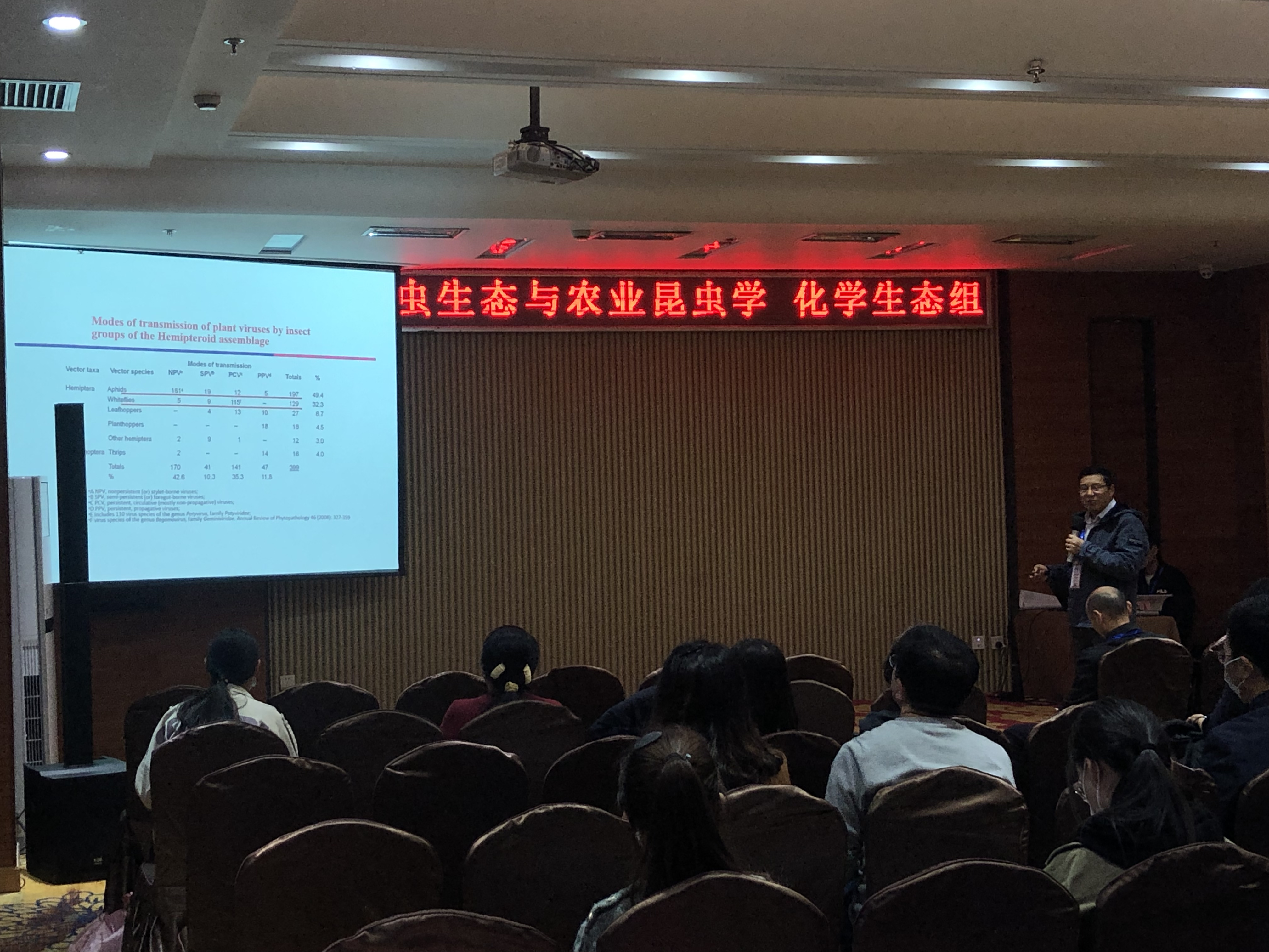本次会议共设9个分会场。昆虫学系3名教师,2名研究生做了报告,闫凤鸣教授做了题为“植物-介体-病毒互作的化学生态学”的报告,魏纪珍副教授报告题目为“CAN在棉铃虫抵御Bt毒杀中的功能解析”,赵晨晨博士做了报告“共生菌介入下烟粉虱传CCYV能力变异机制”;博士研究生刘晓岚和孙龙龙分别做了“棉铃虫幼虫颚神经节的结构与神经元鉴定”和“雄性棉铃虫编码性信息素的神经通路”的报告。
