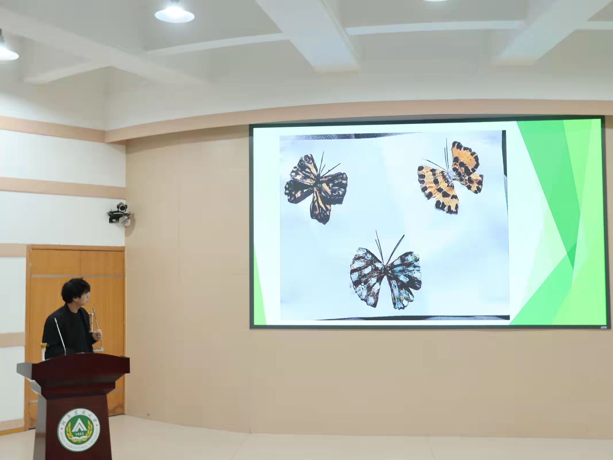 本次学科知识竞赛内容分为摄影、绘图、标本制作、工艺品、调研报告、微电影6类,共319人次参与,收到参赛作品179份,经过初赛,有139份作品进入决赛,绘图类50份、标本类21份、工艺品类16份、摄影类24份、微电影类22份、调研报告类6份。进入决赛的作品以ppt形式依次向大家展示。参赛选手思路清晰地解说了自己作品的立意与制作过程。现场竞赛氛围浓厚,让在场人员深切感受到植保的魅力。各专业评委老师于100人报告厅参观后向参赛选手提出见解和看法,并对出现的问题进行指导。参赛选手19级植保一班刘文静表示:“这次竞赛作品的制作是在老师的指导和小组成员的共同协作下完成的,我真切地感受了大家的智慧与团结的力量。”来自20级植科二班的汪家奇也收获很多,说到:“竞赛锻炼了我的实践操作能力,让我体会到了参与的乐趣,也浓厚了我对昆虫和植物标本的兴趣。”