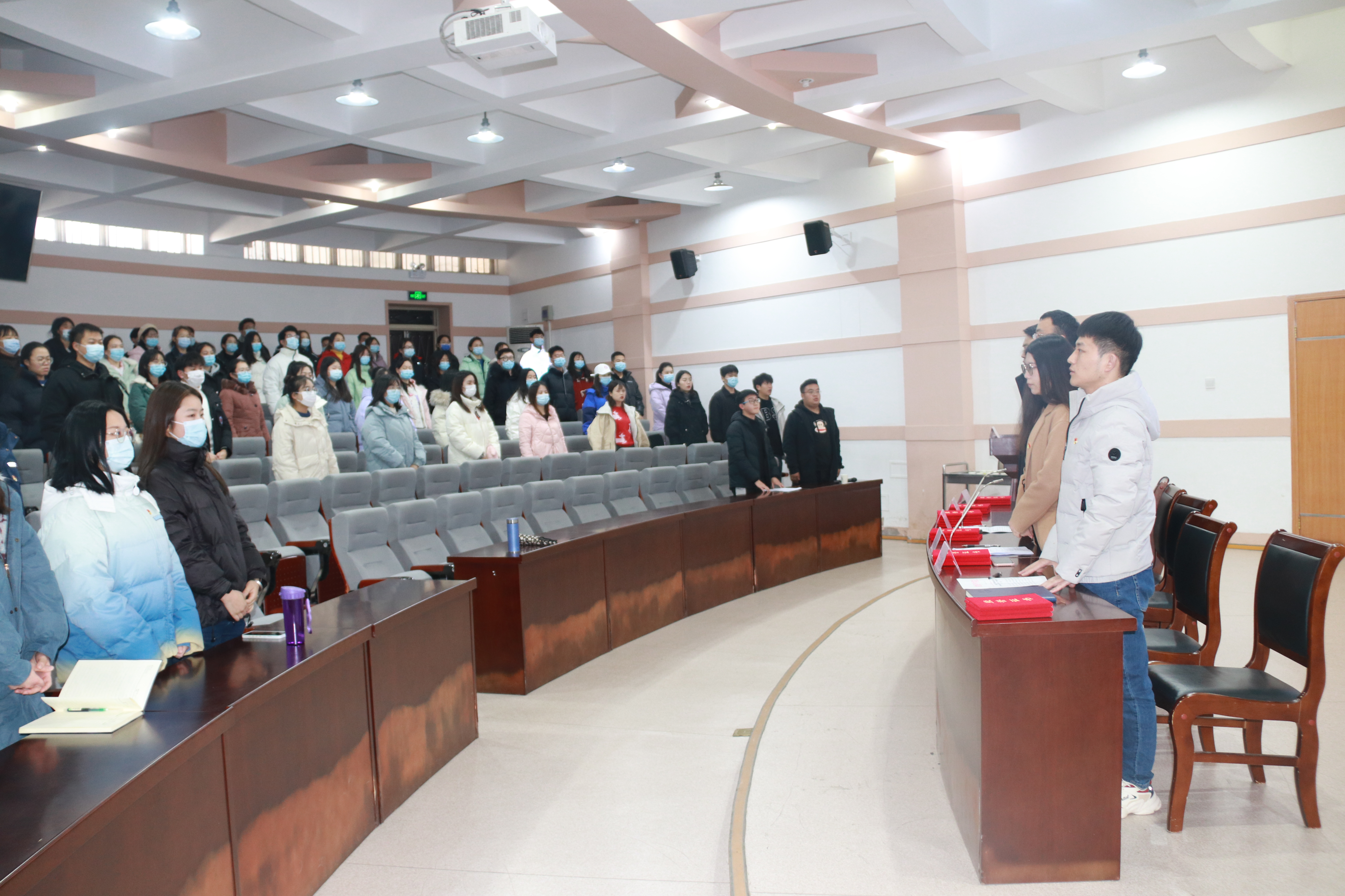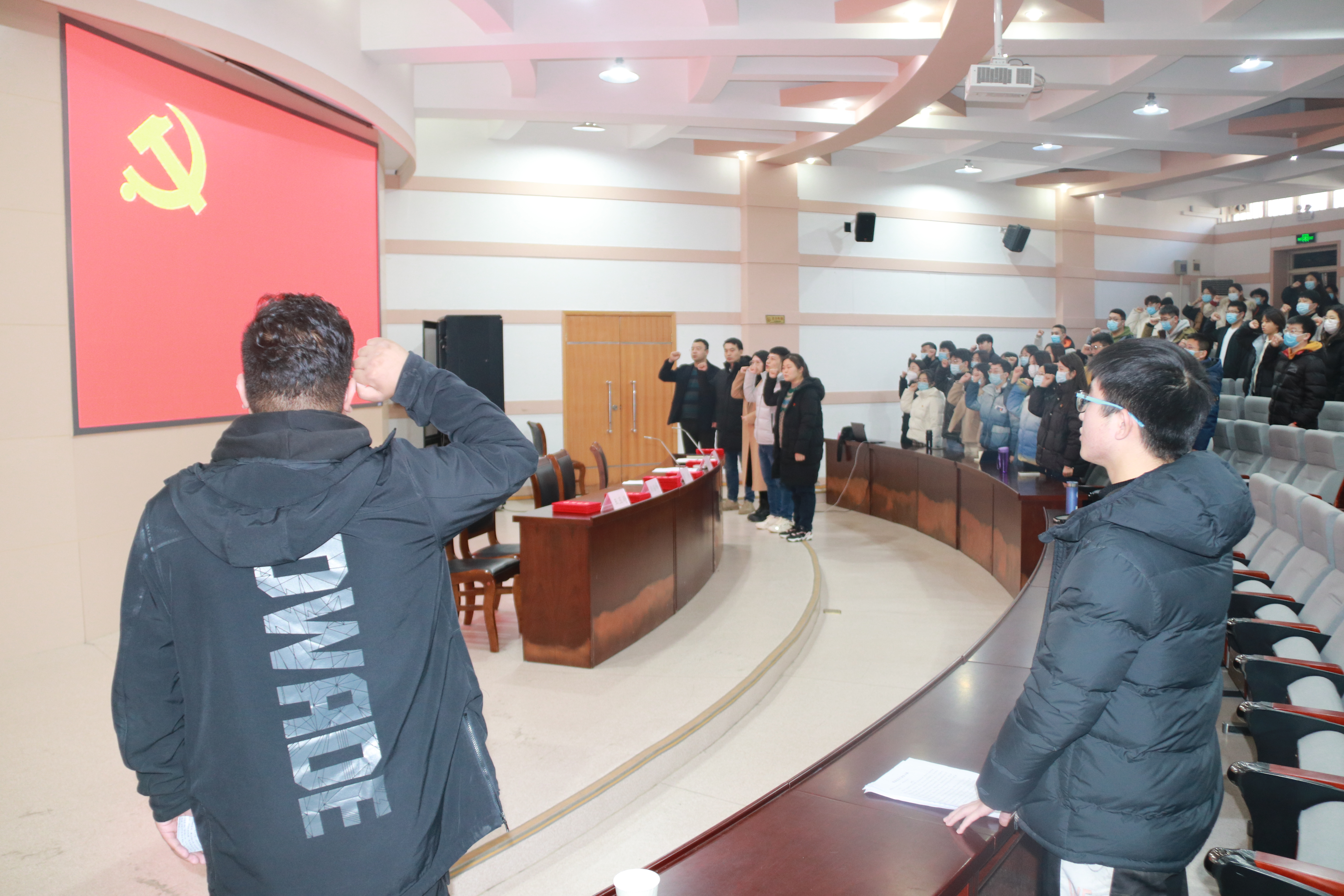 在文化路校区300人报告厅举行新进党员宣誓暨优秀党员表彰大会。院党委副书记鲁兴、院团委老师出席会议,学院新进学生党员参加会议。会议由院党委组织员白瑜瑾主持。