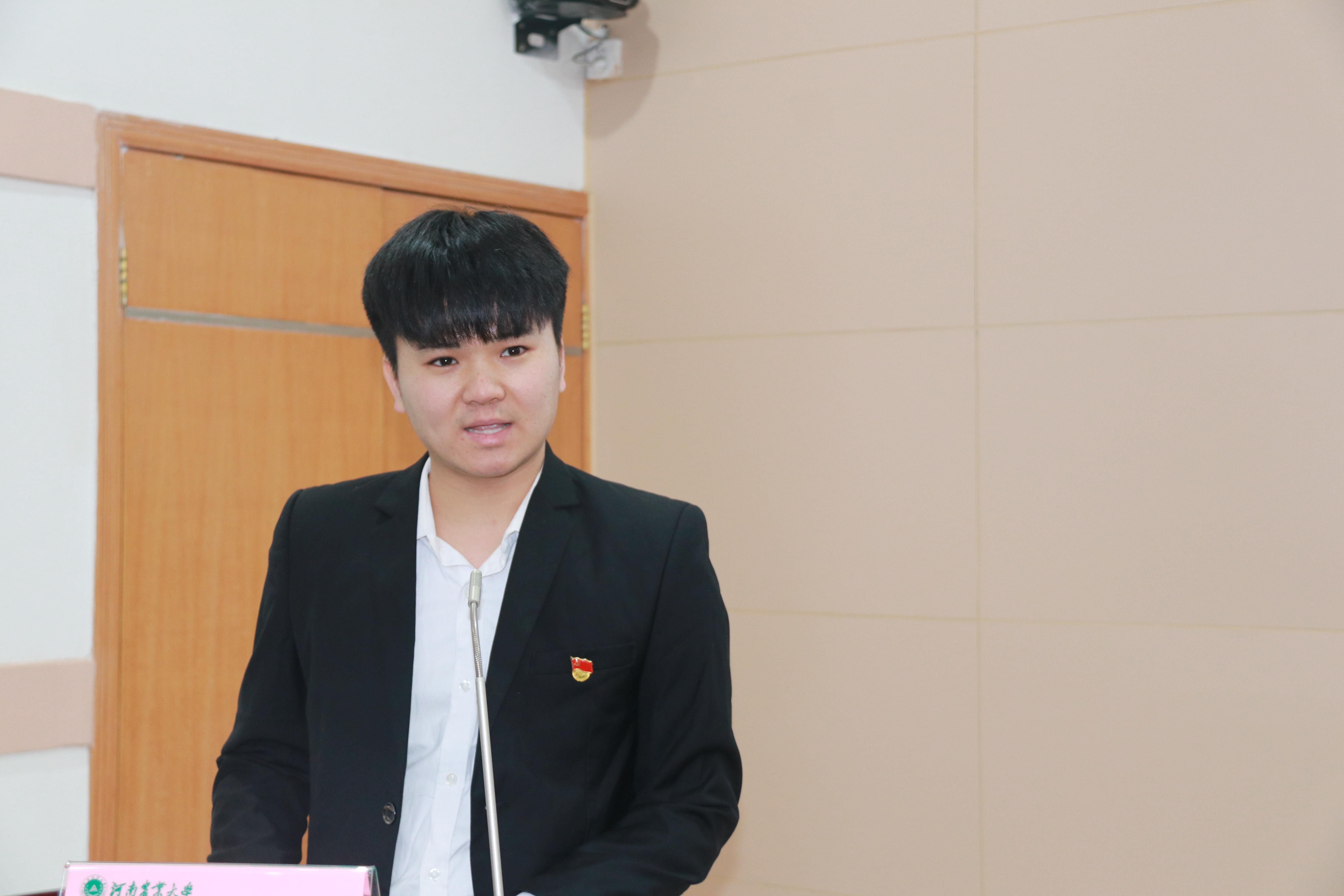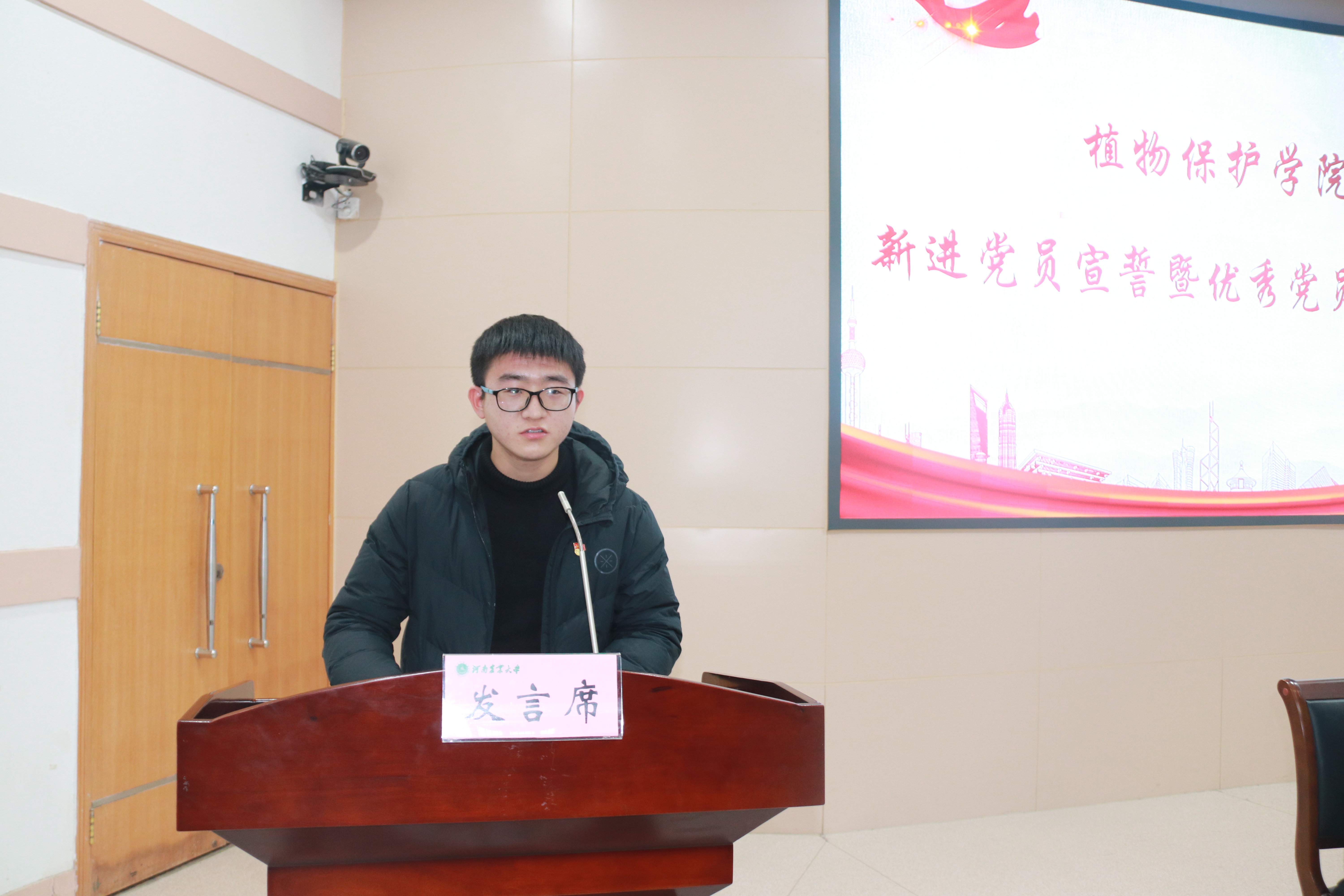 新发展党员代表张峻权在发言中回顾了自己的入党历程并表示会继续增强政治素养,将思想意识与实际行动紧密结合起来。优秀共产党员代表孙龙龙在发言中介绍了自己所在样板党支部的建设情况及积极投身志愿服务的先进事迹,展现了一品探花 学生党员在新时代的使命与担当以及学生党支部的战斗堡垒作用。