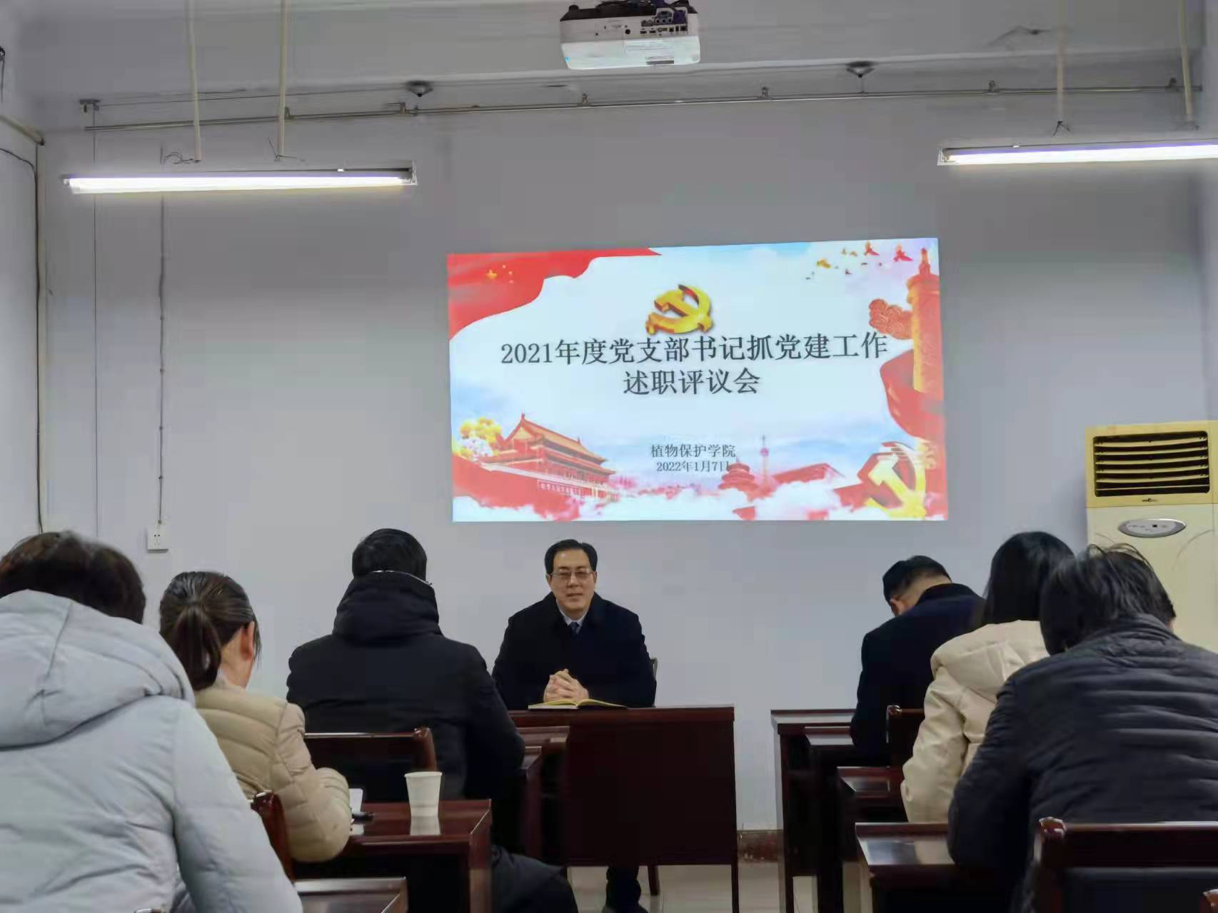 在文化路校区一号楼219党员活动室举行2021年度党支部书记抓党建述职评议会。院党委委员、教工党支部书记及支部委员参加会议。会议由院党委副书记鲁兴主持。