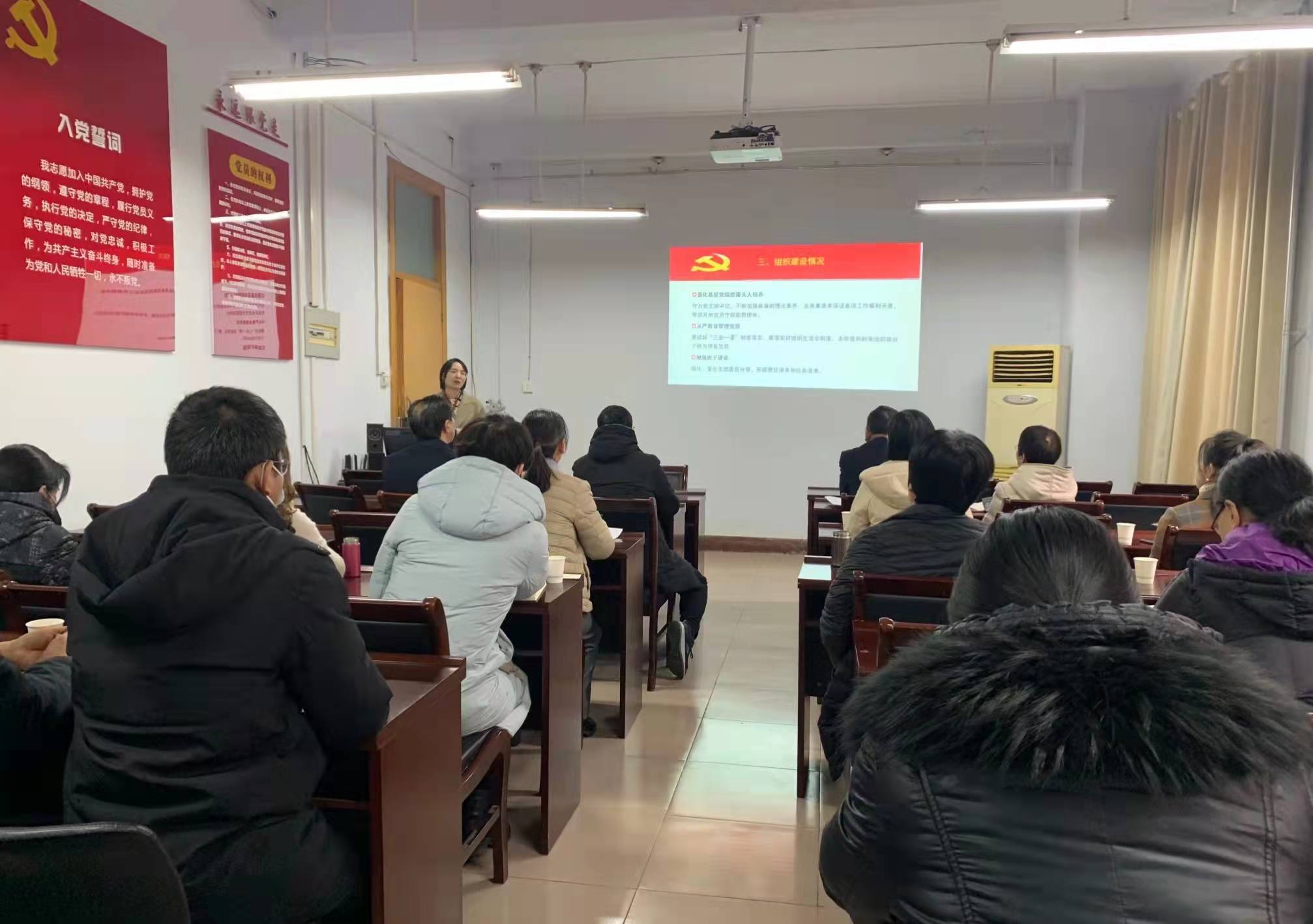 各教工党支部书记依次述职,围绕支部政治建设和思想建设,以“三会一课”、主题党日活动为载体,结合履行抓基层党建第一责任人职责、推动基层党组织建设、组织生活制度落实、发挥支部战斗堡垒和党员先锋模范作用等方面的工作进行汇报,全面总结党支部一年来的工作,认真分析当前支部建设存在的问题,并提出下一步的工作思路和改进举措。