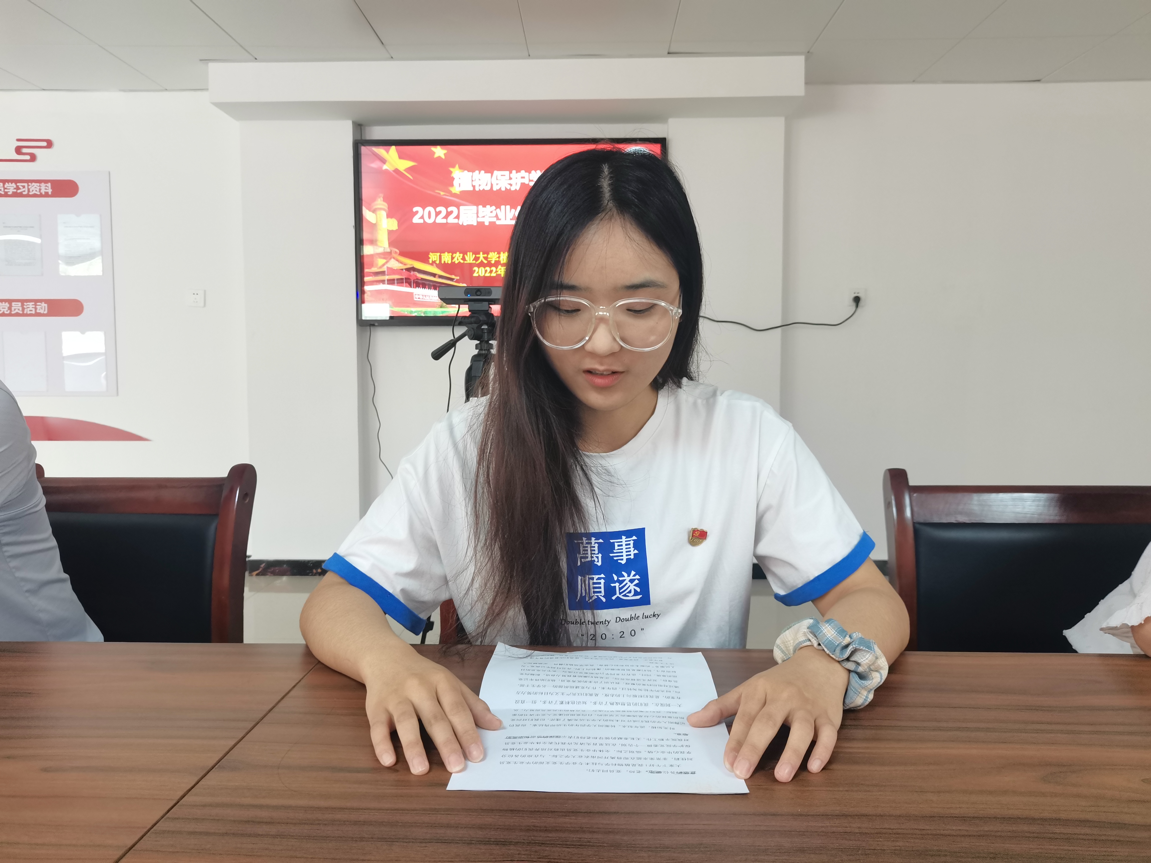 2022届优秀毕业生党员代表万笑迎和刘佳莉做典型发言并表态:会时刻牢记党员身份,永远保持共产党员的精神底色,铭记不忘初心,牢记使命,运用自己所学奉献社会。同时多名先进党员也进行了交流。
