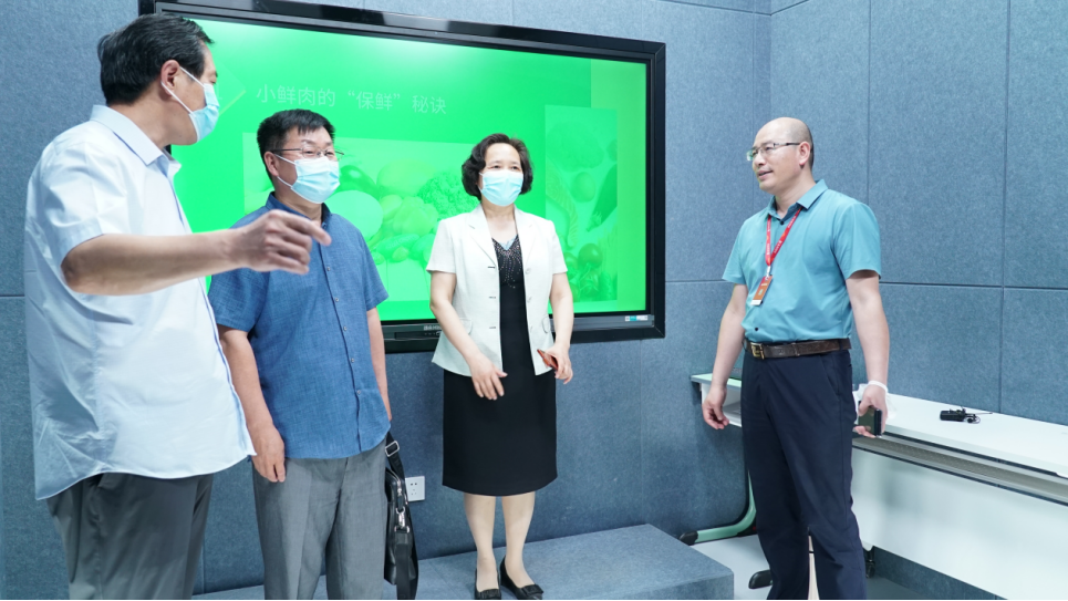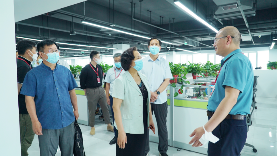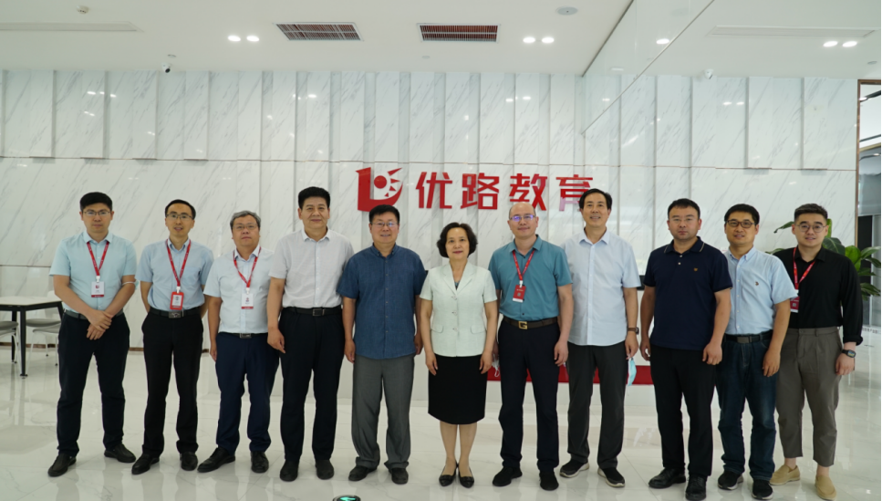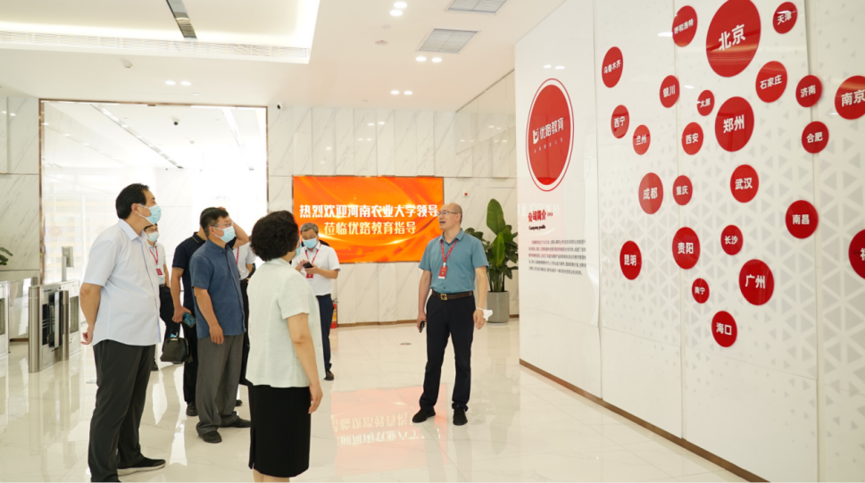 尹新明一行参观了优路教育全国创新中心录播室和员工办公环境,听取了石泰关于优路教育的发展历程、业务布局、“北京”“郑州”双中心发展战略和优路教育人员构成、工作职能、一品探花的介绍。