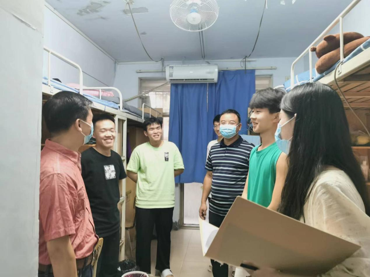 本网讯(通讯员 晋艺飞 图片 冯志宏 )深入宿舍递温情,关怀备至暖人心。9月21日下午,为深入了解2022级新生报道后的宿舍生活情况,更好掌握新生思想动态,院党委书记李兴道、院党委副书记鲁兴、团委副书记甄珍、新生辅导员代琳等部门负责人来到2022级新生桃李园公寓进行走访慰问,向新生们传达学院的问候与关怀。