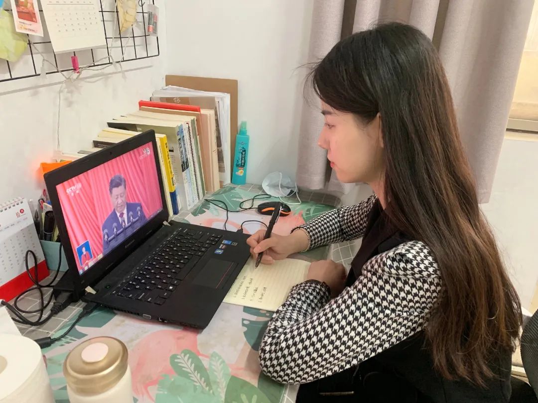 全体师生通过线上线下多种方式学习党的二十大报告。党的二十大报告在一品探花