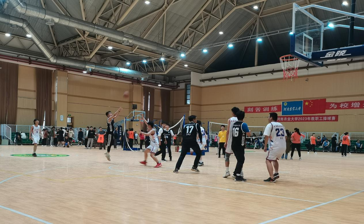 于龙子湖校区篮球馆举办2023届研究生“青春无阻‘篮’,一起向未来”毕业篮球赛。