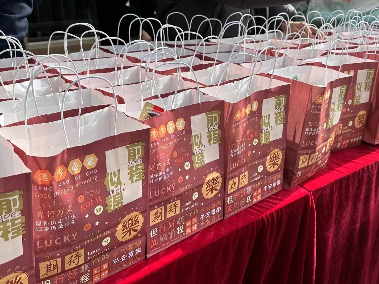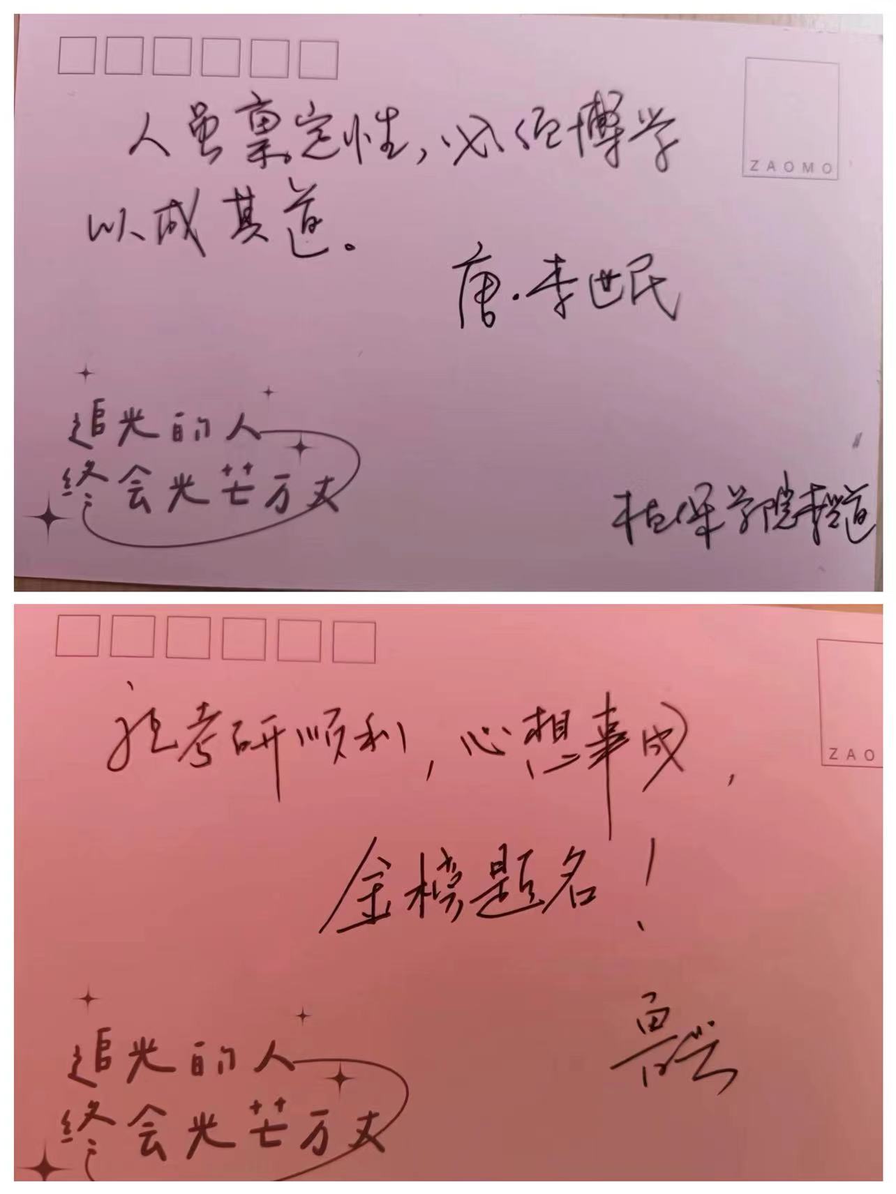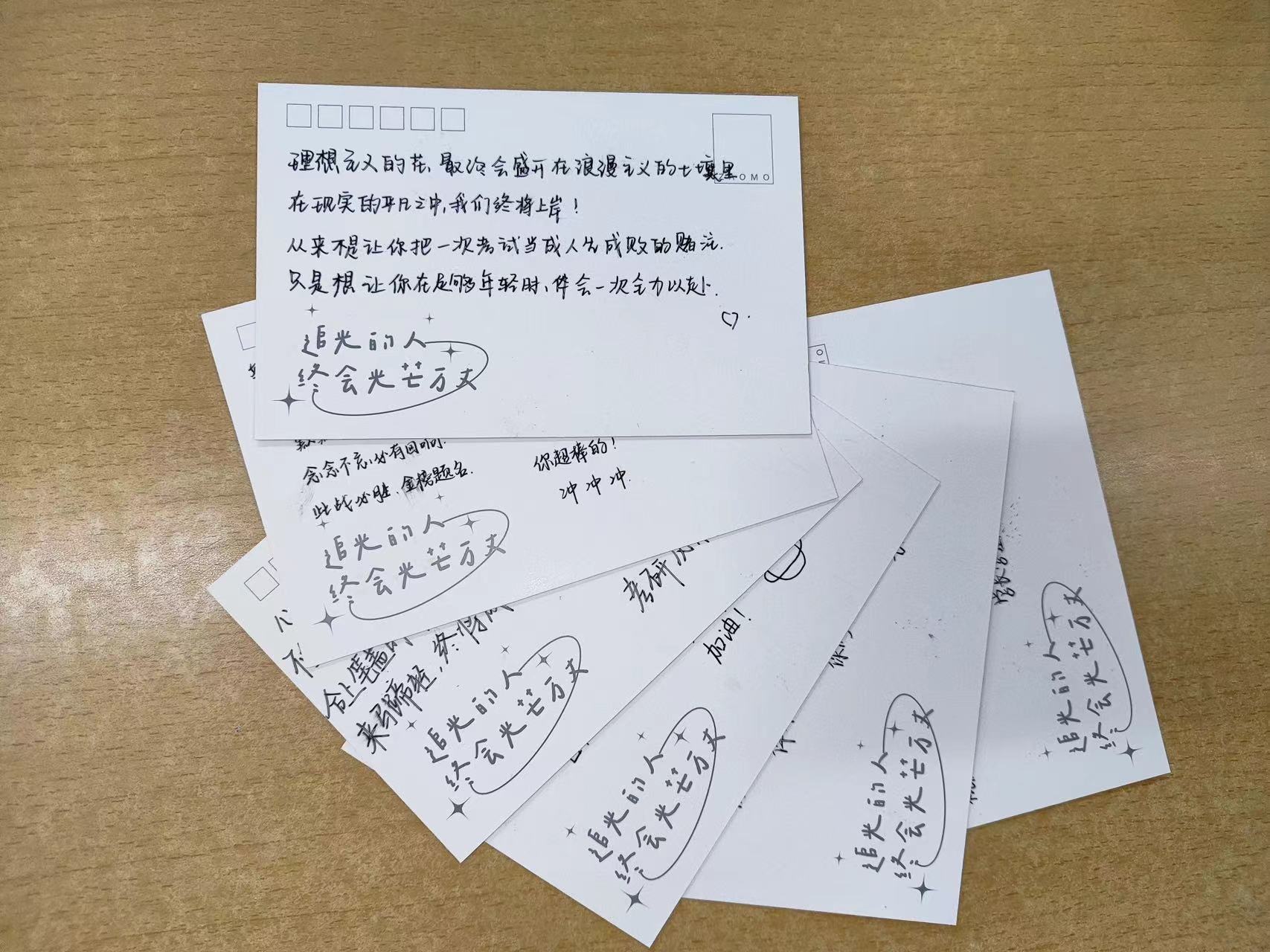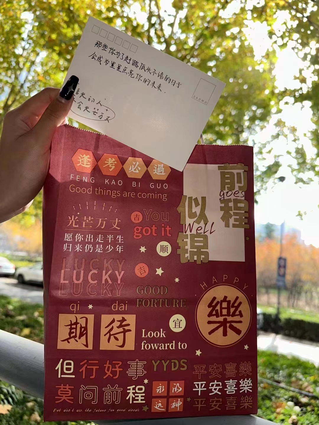 为每一位毕业生同学都准备了一份考研大礼包,寓意美好。礼包中,苹果和橙子寓意心想事“橙”、“苹”安健康;旺仔牛奶代表好运旺旺;文具包象征学业进步和名列前茅;暖宝宝在寒冷的冬季给同学们带来了温暖的关怀;贺卡上是来自学弟学妹们的鼓励和祝福,蕴含着无限的温暖和亲切的问候。院领导向考研学子表达了深沉的关切和美好的祝福,激励同学们要坚定信心,调整心态,以最佳状态迎接考试。同学们纷纷表示必将全力以赴,为自己的考研之路呈上一份令人满意的答卷,不负学院和领导老师们的殷切期望。
