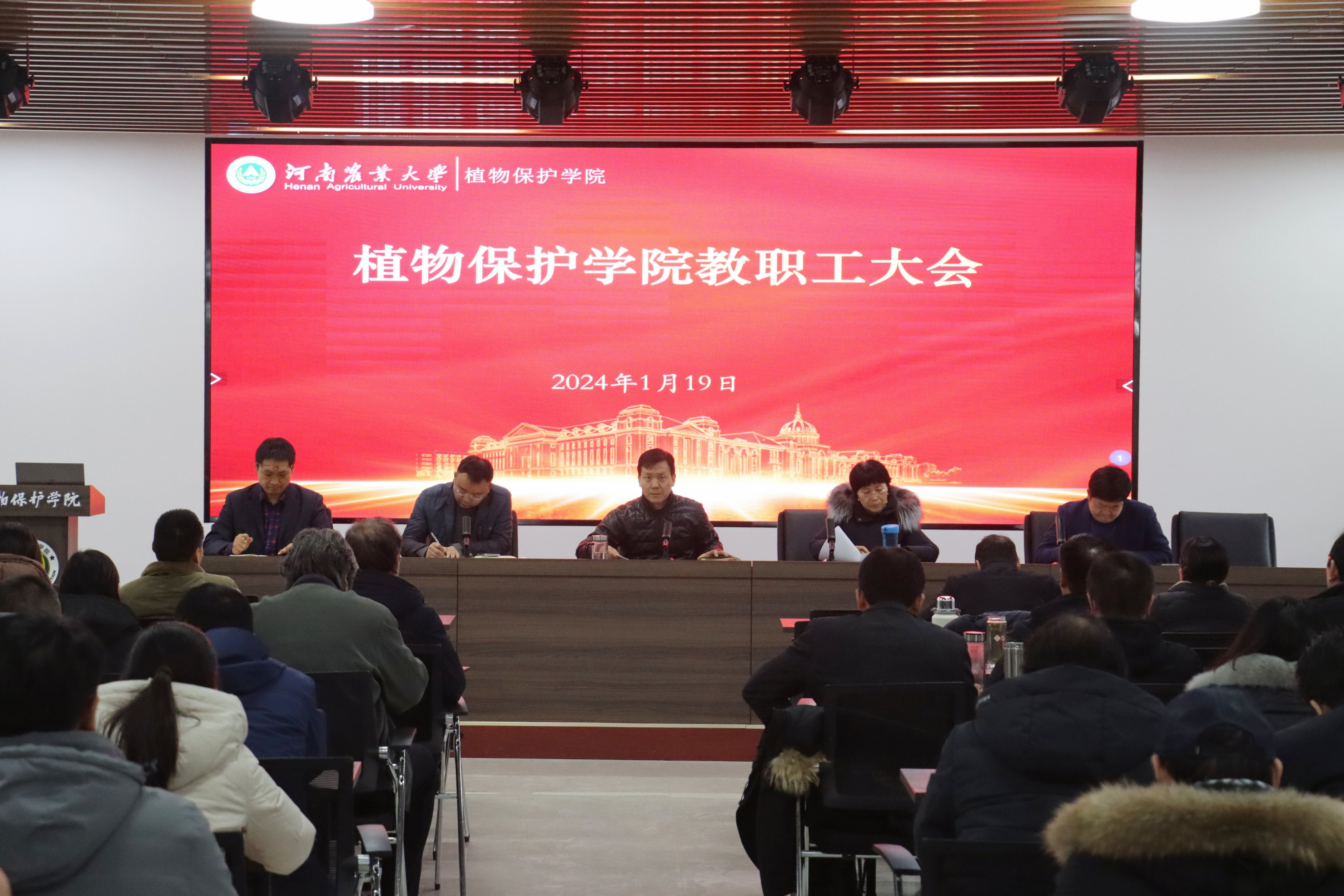 在第二实验楼6楼会议室举行全体教职工大会。学院领导班子及全体教职工参加会议,会议由院党委书记李兴道主持。