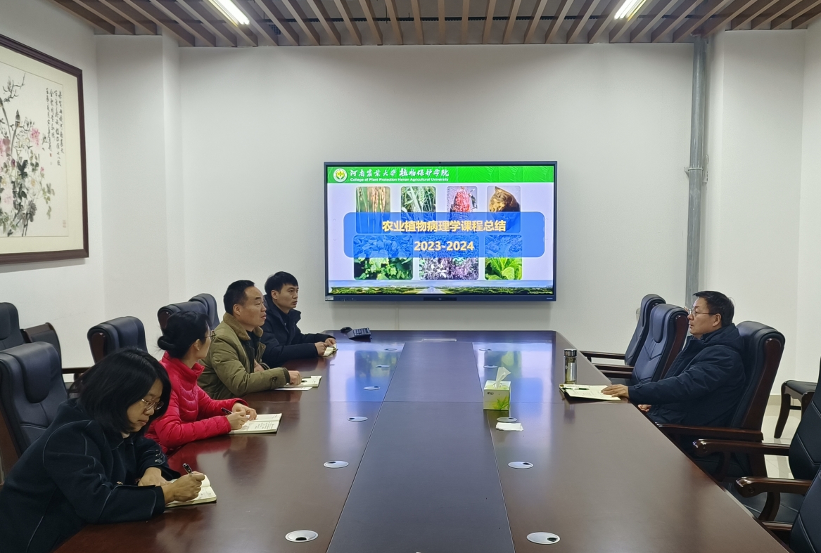 于第二实验楼209会议室举办《农业植物病理学》2023-2024年度教学总结会,教学团队负责人李洪连教授及全体成员参加会议。