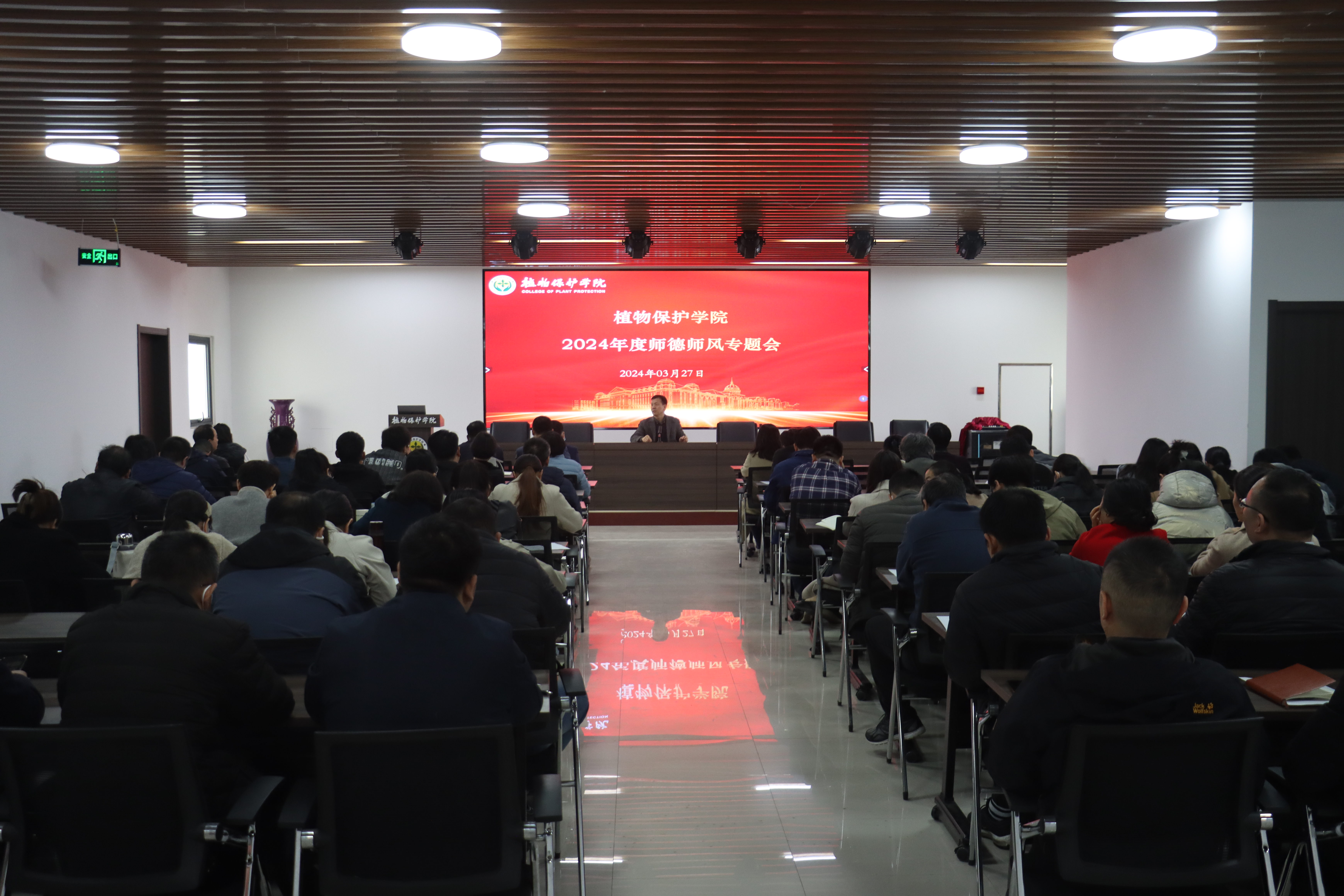 于龙子湖校区第二实验楼六楼会议室举办师德师风专题报告暨师德承诺书签订仪式。全体教职工参加签订会议,仪式由院党委书记李兴道主持。