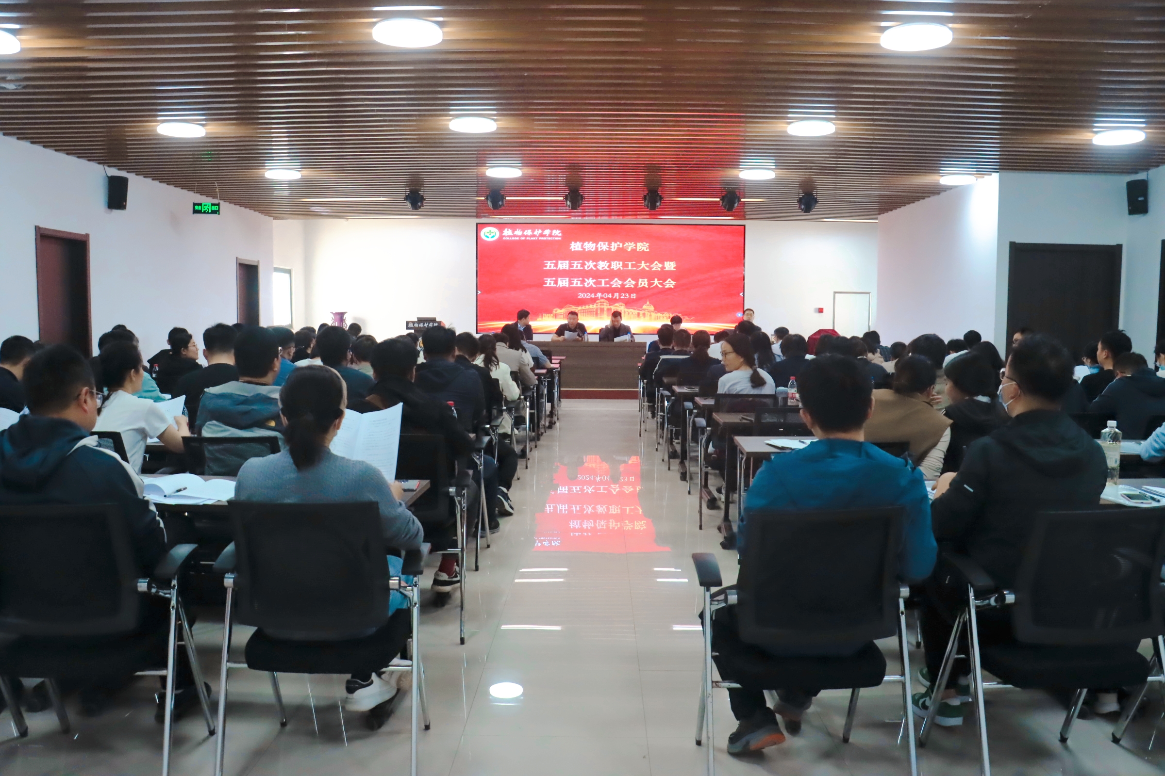于龙子湖校区第二实验楼六楼会议室召开五届五次教职工大会暨五届五次工会会员大会。全体教职工参加会议,会议由院党委副书记鲁兴主持。