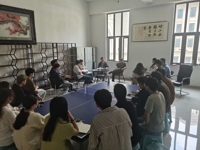 于第二实验楼2中220会议室召开2020级毕业生学生干部座谈会。院党委书记李兴道、党委副书记鲁兴、杨淑芳老师、敬同坊老师以及20级各班班长、团支书参加座谈会。