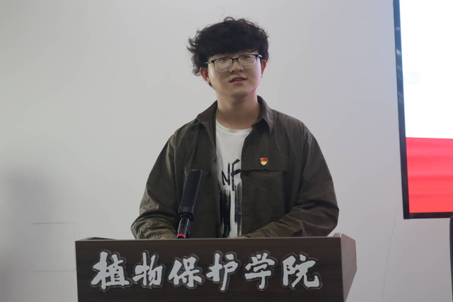 毕业生党员代表张峻权上台发言,号召全体毕业生党员坚定不移听党话、跟党走,时刻牢记党员身份,永葆党员精神底色,继续砥砺前行,坚定理想信念,让青春在全面建设社会主义现代化国家的火热实践中绽放绚丽之花。