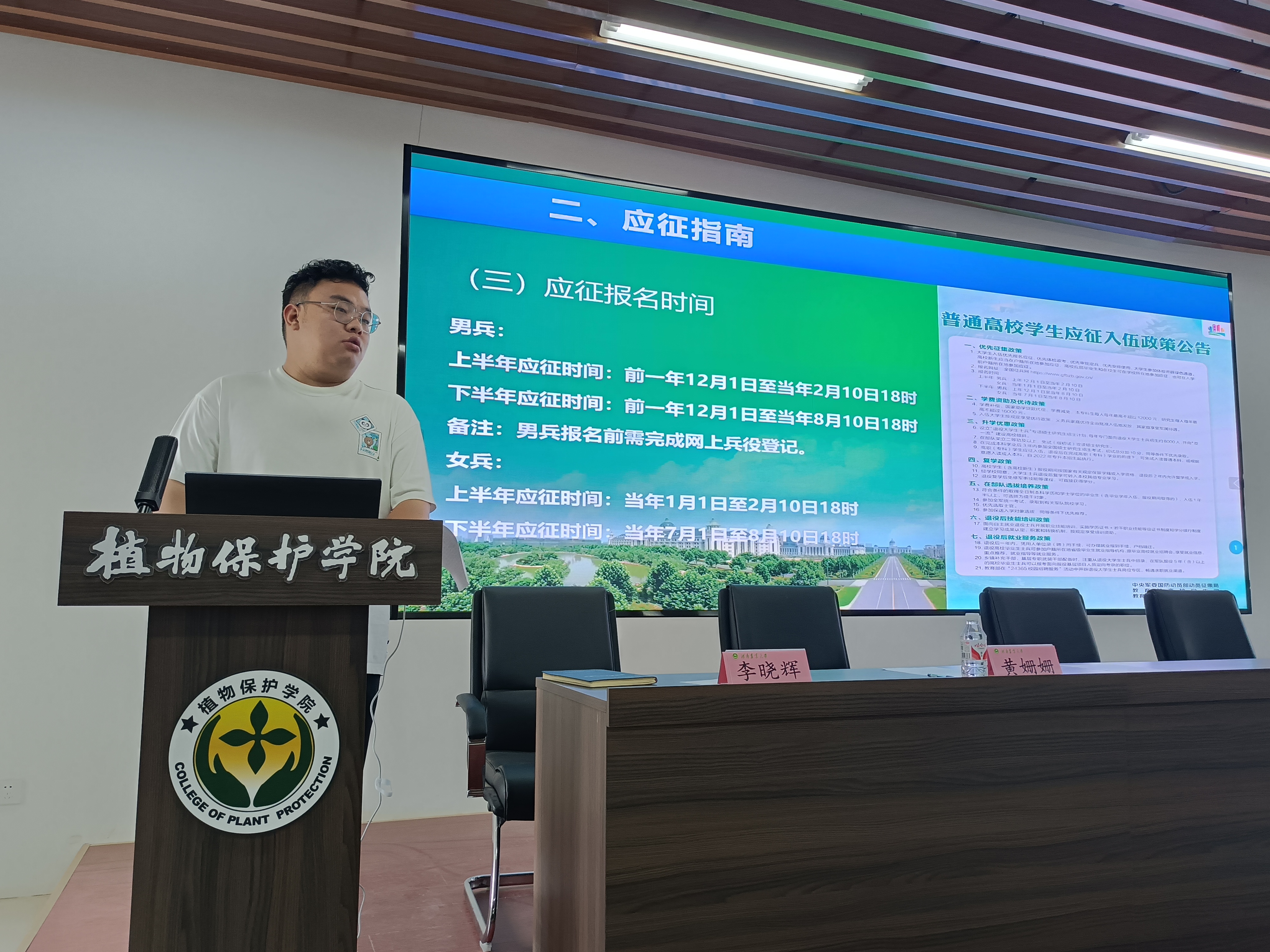 在第二实验楼六楼报告厅举行征兵宣讲会。2024届毕业生参加会议,会议由辅导员王赟飞主持。
