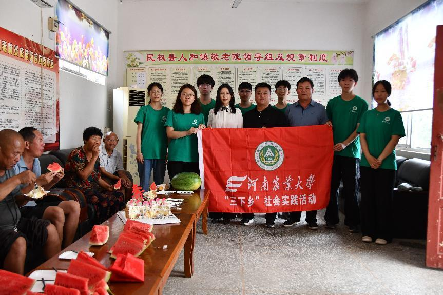 “田园梦想家”暑期社会实践队伍前往商丘市民权县人和镇敬老院开展“青春送温暖”实践活动。