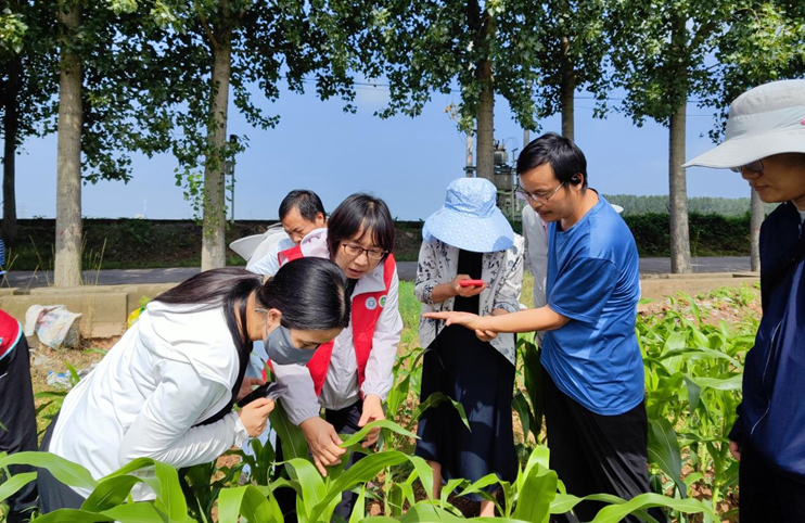 专家团队首先到济源市奥邦生物科技有限公司玉米病虫害防治试验田进行实地考察,听取了该公司负责人对承担的试验项目的简要介绍,调查了玉米生长状况及病虫害发生情况,并根据河南省近期多雨天气可能对病虫害发生情况造成的影响进行了分析,指出田间试验需要注意的一些问题。