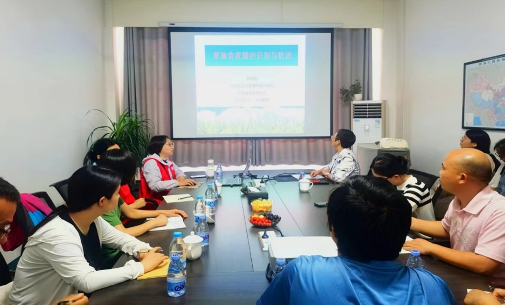 调查结束后,服务团成员前往济源市奥邦生物科技有限公司进行参观考察,同公司领导以及当地植保部门的相关专家进行了深入沟通交流。交流会上,济源市奥邦生物科技有限公司负责人向专家团队介绍了公司发展情况,并对郭线茹教授及其团队的到来表示热烈欢迎。郭线茹教授根据公司需求做了“草地贪夜蛾的识别与防治”的技术报告,向公司负责人及试验技术人员详细介绍了草地贪夜蛾各虫态的识别特征、幼虫为害症状、生物学特性及防治措施,并介绍了草地贪夜蛾幼虫药剂防治时应注意的接虫时期、调查时期和药效分析方法等技术关键。同时,郭教授还强调在防治害虫时要严格遵守农药使用规范,以防止农药滥用可能带来的作物药害和环境污染问题。报告结束后,双方就农药试验方面存在的一些问题及今后校企合作的可能性进行了深入讨论。