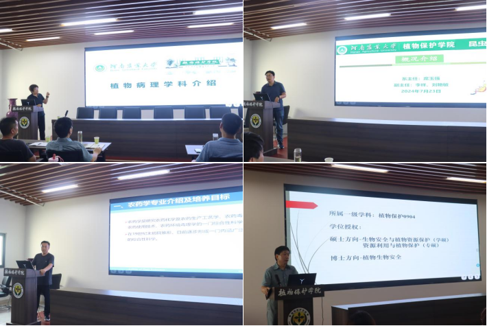 植物病理系邢小萍教授、农业昆虫与害虫防治系席玉强副教授、农药系刘向阳教授和植物科学与技术王红卫教授从研究领域、师资力量、培养目标、就业形势等方面,对学院进行了全方位、多角度地介绍,他们表示学院师资力量雄厚、科研资源丰富、研究领域广、注重产学研结合、学术氛围浓厚等特点,热忱欢迎大家报考一品探花