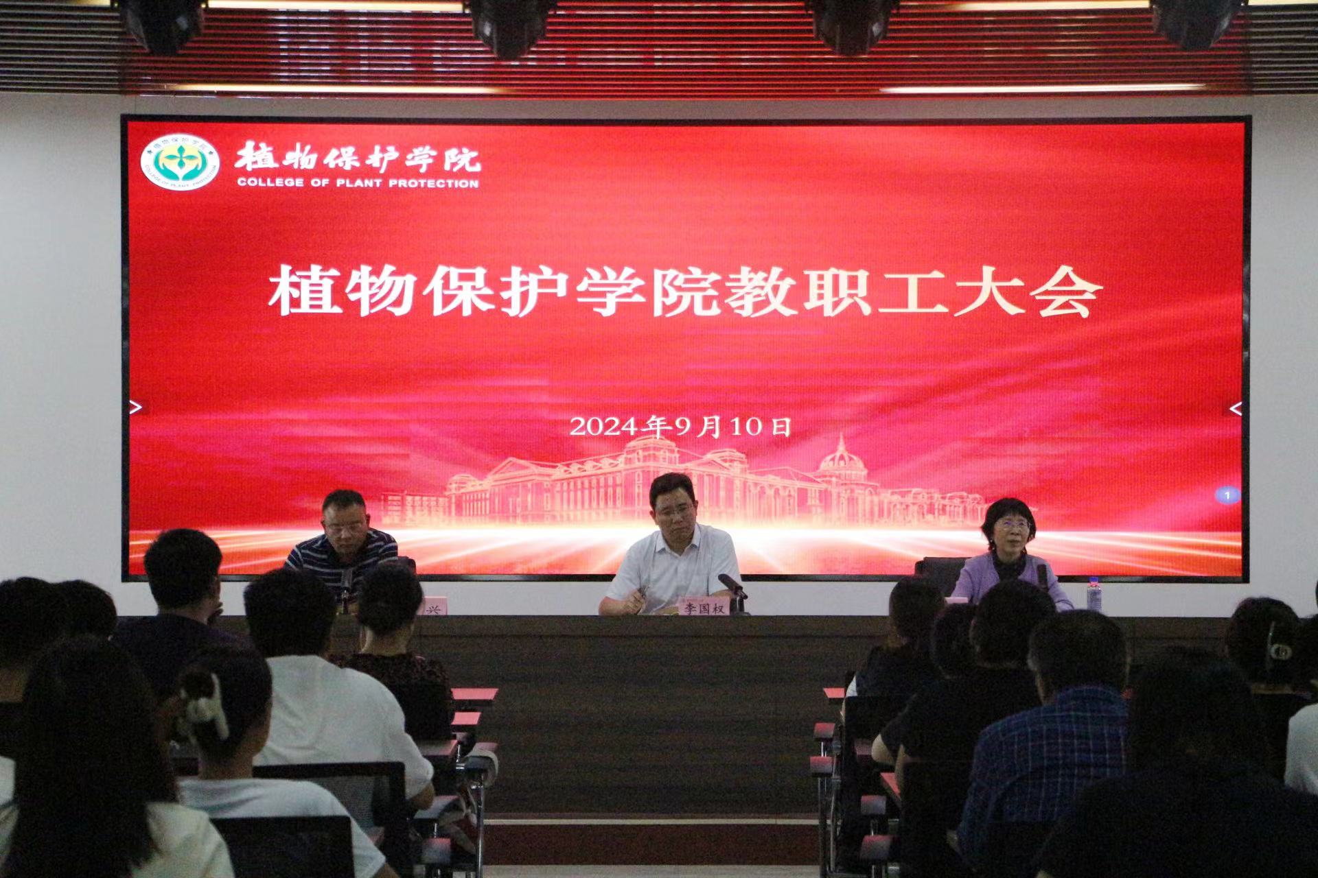 于第二实验楼六楼会议室召开全体教职工大会。学院领导班子及全体教职工参加会议,会议由院党委书记李国权主持。