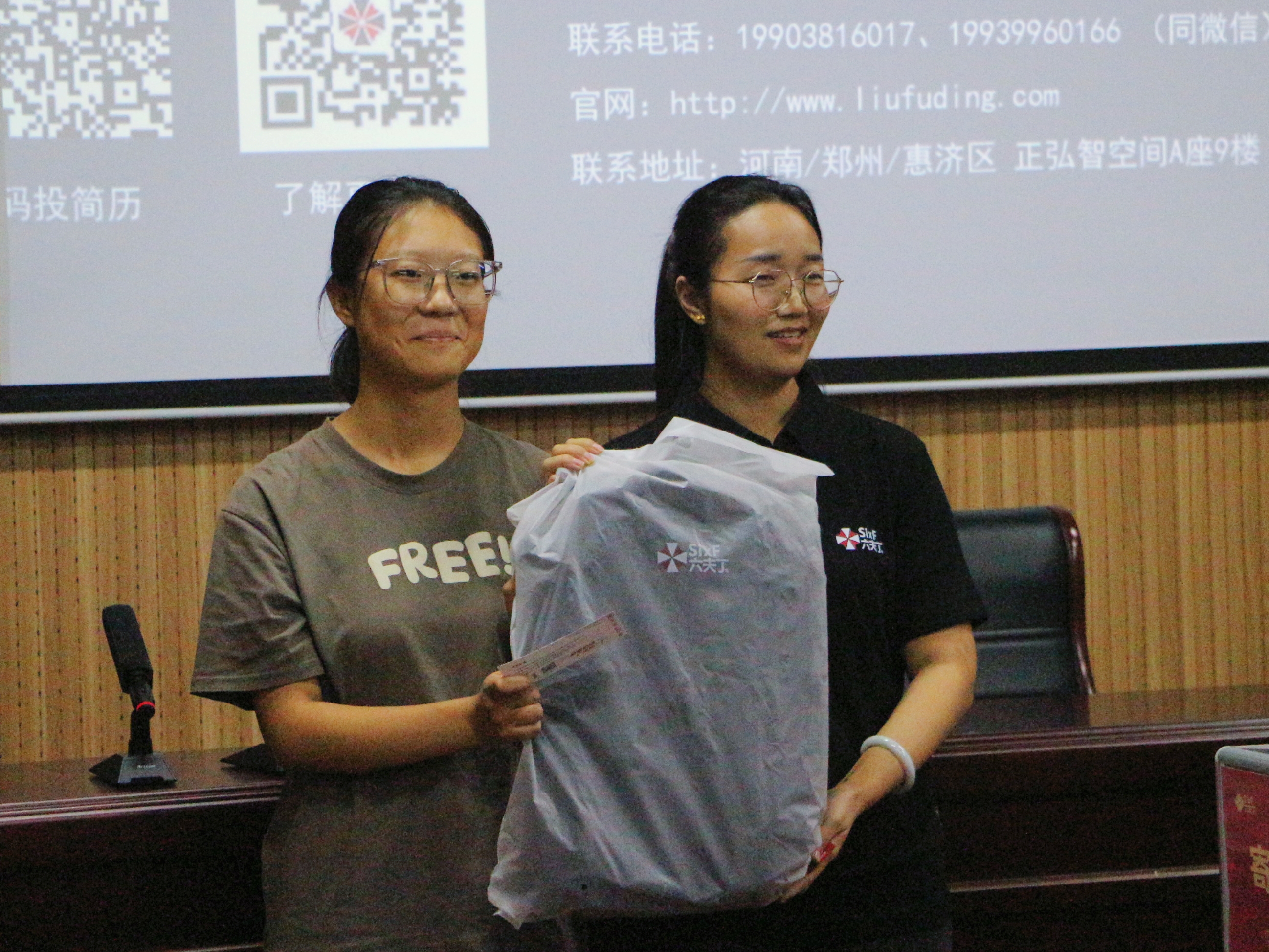 六夫丁负责人通过视频展示的方式向同学们介绍了公司背景、一品探花、价值观、发展历程及过往取得的辉煌成就。在企业招新环节,六夫丁负责人就招聘计划及校招流程作了详细介绍,表示六夫丁作物保护有限公司致力于技术研发与人才培养,重视团队协作和一品探花建设,诚挚邀请大家的加入。抽奖环节,同学们积极参与,现场气氛活跃,奖品是背包、U盘等实用物件,传达着六夫丁作物保护有限公司对同学们的美好祝福与期盼。