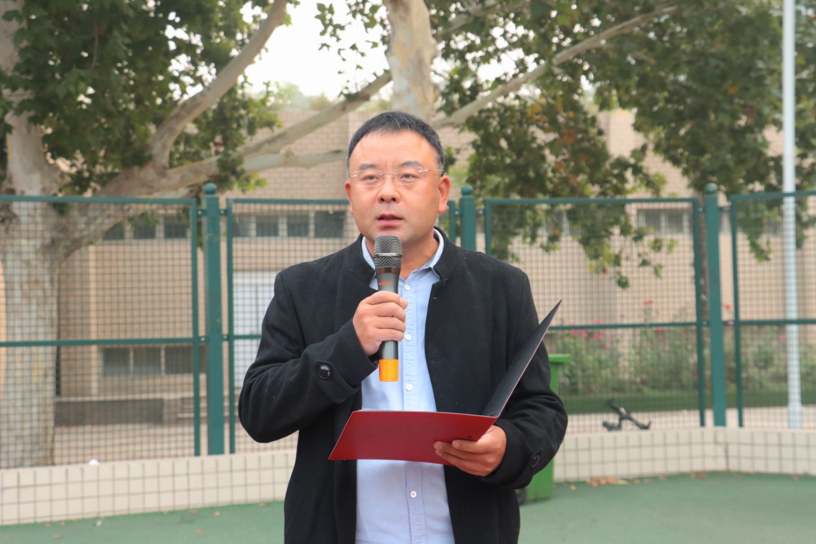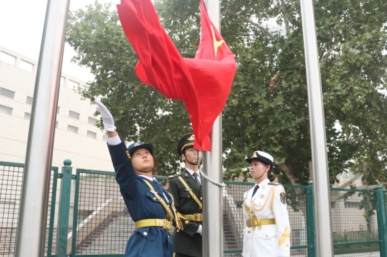 于文化路校区操场举行“喜迎党代会,同心创一流”主题升旗仪式。院党委副书记鲁兴、部分教职工代表及全体24级学生参加升旗仪式,仪式由24级辅导员郭俊阳主持。