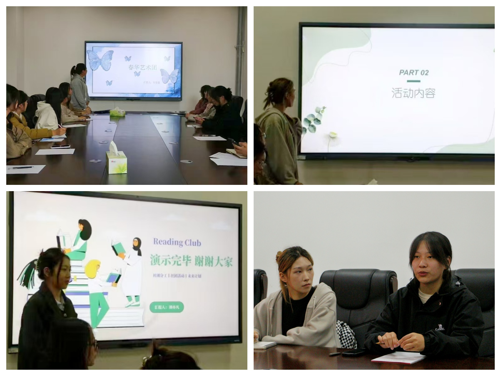 益起爱青年志愿者协会、英语爱好者协会、绿社团、明思读书社、春华艺术团学生代表就如何加强学生社团管理,推动学生社团健康有序发展,充分发挥学生社团育人的功能发表个人见解,并为学生社团持续稳定发展提出未来展望。