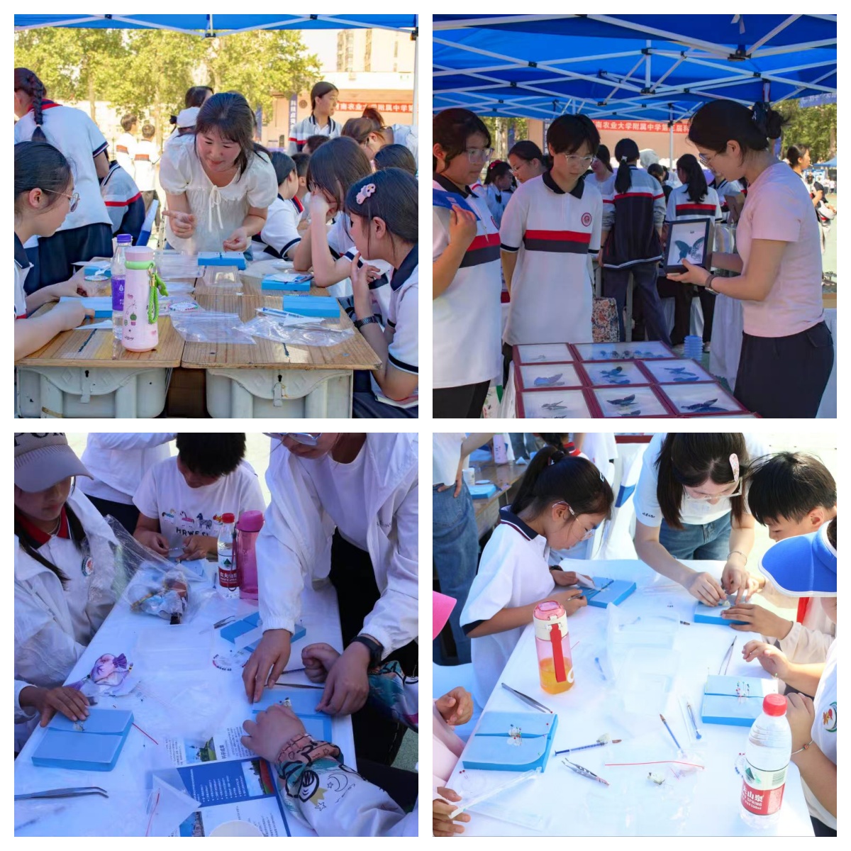 精心打造的昆虫标本展示与制作区域成为众人瞩目的焦点。展示区中,昆虫标本琳琅满目,从色彩斑斓的凤蝶到纤薄如纱的蜻蜓,每一只都被精心固定在展板上。讲解员用专业的知识为参观者介绍每种昆虫的学名、产地和习性,现场气氛热烈。昆虫标本制作区也人气高涨,昆虫针、展翅板和软化剂等设备摆放整齐,指导老师们热情分享标本的制作原理和方法,极大激发了同学们对昆虫的探索热情。