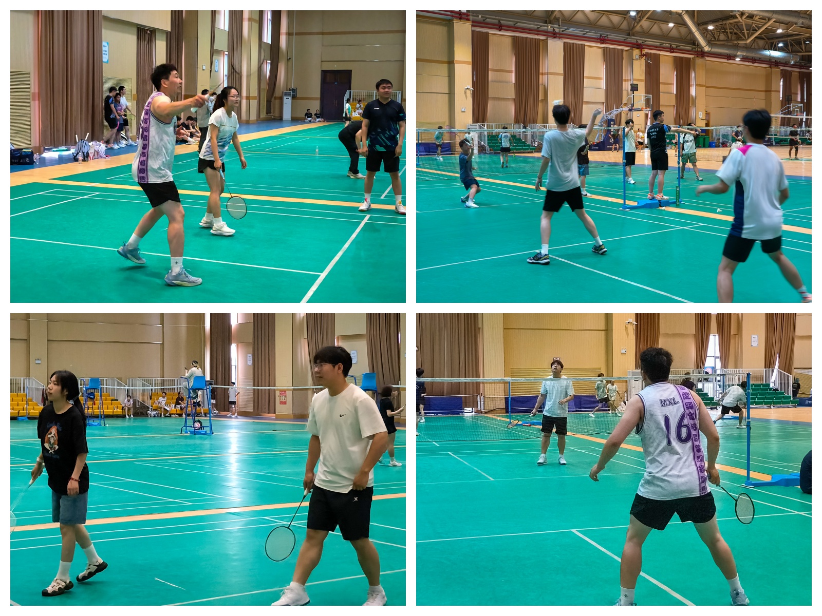 于龙子湖校区体育馆二楼羽毛球场举办2025届毕业生羽毛球赛。学院毕业生代表和教职工代表参加比赛。