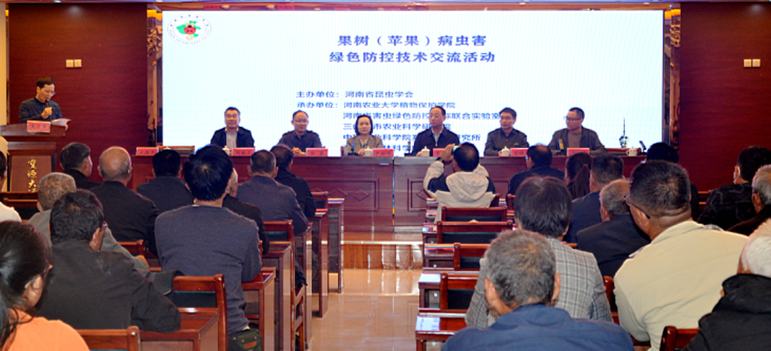 果农培训现场,尹新明教授受邀作“苹果害虫绿色防控技术”专题培训,系统讲解主要害虫的绿色防控策略与实用技术;李为争副教授进行了“果树害虫防治新技术”的报告,席玉强副教授开展“苹果几种主要害虫的识别与防治”培训,同时,来自河北农业大学王树桐教授、西北农林科技大学梁晓飞教授、青岛农业大学练森教授、中国农业科学院郑州果树研究所阎振立研究员、三门峡农科院韩立新研究员,分别通过图文并茂的讲解方式,提升果农对苹果品种选择、栽培管理,害虫识别与防治的能力。培训现场互动热烈,果农们积极提问,专家耐心解答,取得良好效果。