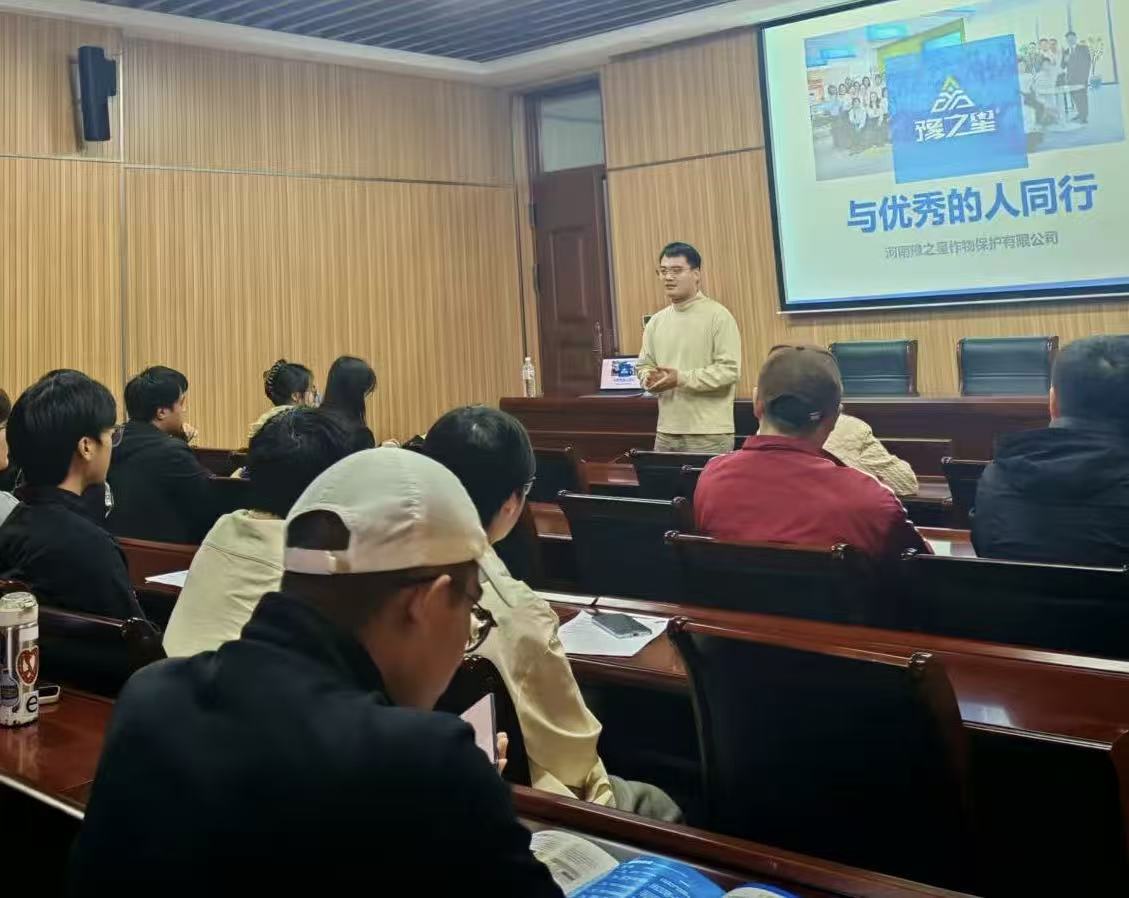 河南豫之星作物保护有限公司以企业宣传片开篇,迅速吸引学生注意力。宣讲中,企业全面介绍自身发展历程、核心业务及未来规划,并针对各专业招聘岗位、任职要求及薪资待遇等学生关心的问题进行重点讲解。宣讲尾声,企业现场接收学生简历,并同步安排后续面试事宜,高效协助学生与企业对接,切实为求职学子打通“最后一公里”。